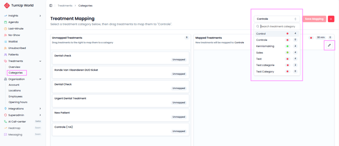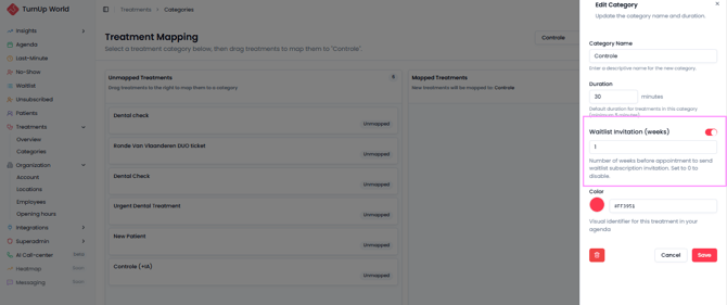 Je kan de feature activeren per behandeling of per behandelingscategorie.